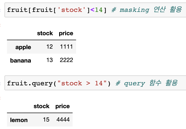 Masking 연산이나 query함수으로 조건에 맞는 DataFrame 행 추출 가능
