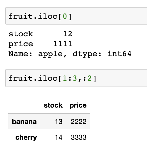 .iloc : 파이썬 스타일의 정수 인덱스 인덱싱/슬라이싱 (a:b 이면 b-1까지 포함!)