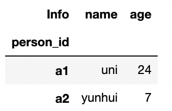 print(data.index) # Index(['a1', 'a2'], dtype='object', name='person_id')