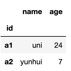 print(data.index) # Index(['a1', 'a2'], dtype='object', name='id')