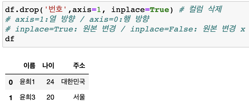 DafaFrame에서 컬럼 삭제 후 원본 변경