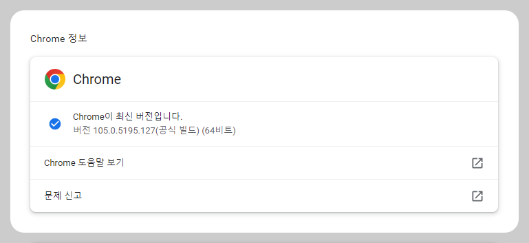 위와 같이 자신의 Chrome 버전을 확인 가능.
