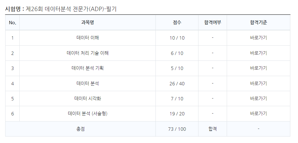 73점으로 아슬아슬 합격 ~~~