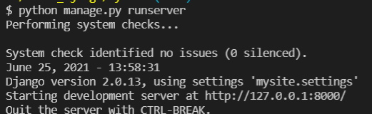 $ python manage.py runserver
