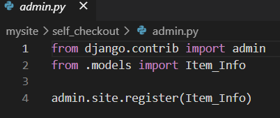 앞의 과정에서 models.py 안에 설정했던 테이블의 이름(Item_Info)을 사용한다.